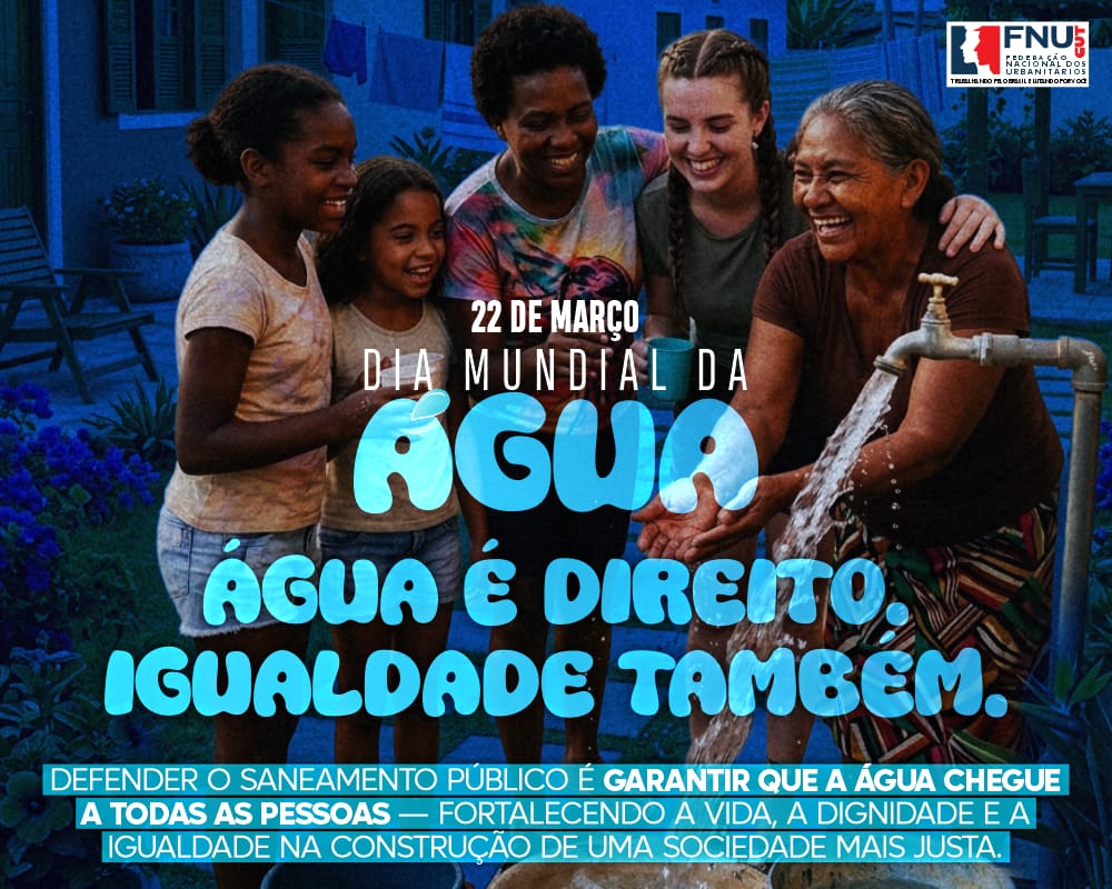 Neste 22 de março: Dia Mundial da Água, a FNU reforça uma verdade que precisa ser defendida todos os dias: garantir que a água chegue a todas as pessoas, com qualidade e regularidade, é uma condição básica para a vida, a dignidade e a construção de uma sociedade mais justa.